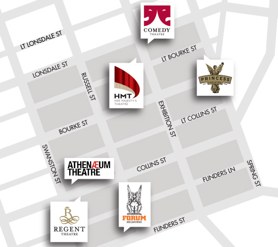 Melbourne’s East End Theatre District is home to six of our city’s most iconic theatres, all within walking distance of each other. Together they host world-class musicals, blockbuster plays, local and international live music, children’s shows, comedy, festivals, and special events.